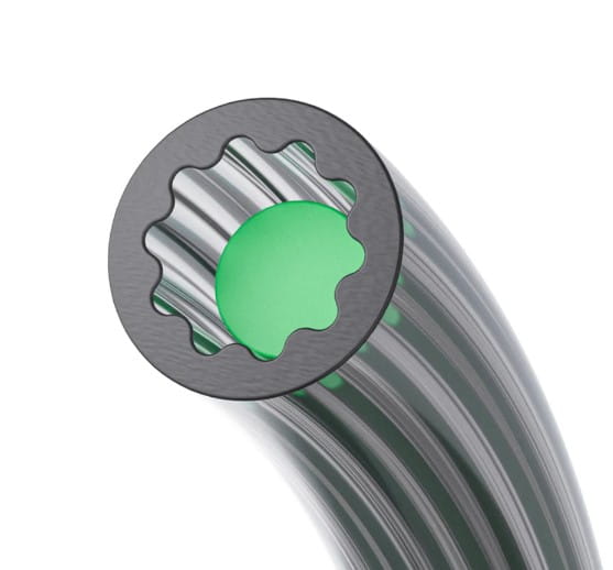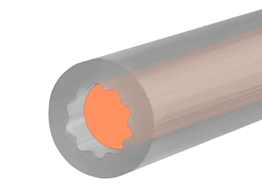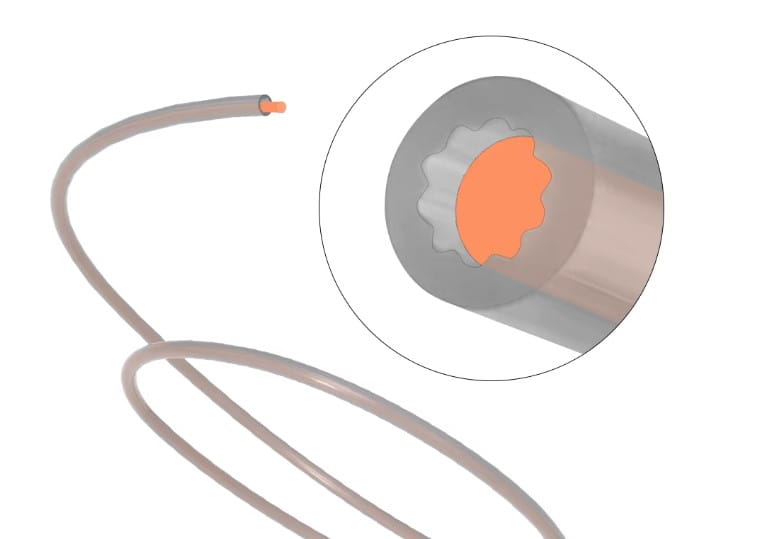 Nowa konstrukcja otworu wewnętrznego w kształcie gwiazdy ma mniejszy opór przy tym samym rozmiarze otworu wewnętrznego, co zmniejsza wzrost tarcia między materiałem wchodzącym i wychodzącym na skutek zginania filamentu.